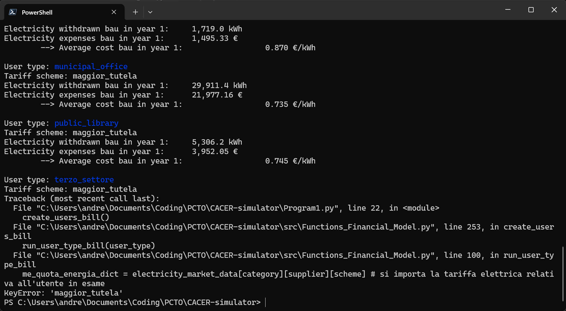 Il programma funziona normalmente, ma al momento della generazione della fattura per "terzo_settore" viene restituita una eccezione e non so ancora il motivo, ho provato a controllare il file ma gli input sembrano giusti 💀